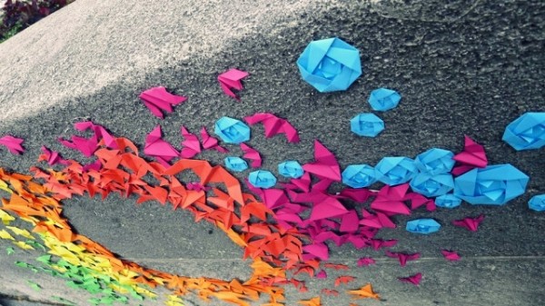 Rainbow Origami Streetart by Mademoiselle Maurice (8 Pictures + Clip)