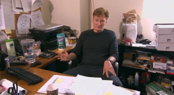 Conan catches his Producer Jordan Schlansky coming In Late (Clip)