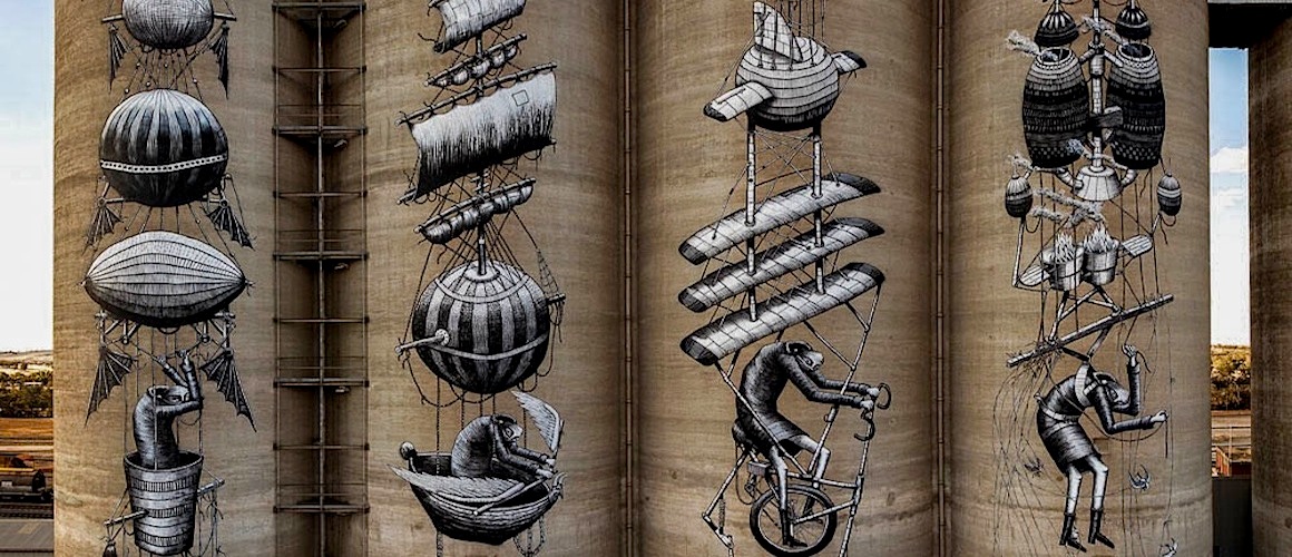 Streetart: New Mural by British Artist Phlegm on Giant Grain Silos in Perth // Australia