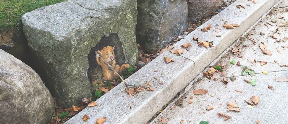Vor etwa einem Jahr haben wir hier auf WHUDAT erstmals, die herrlich unterhaltsamen Street Art-Kreationen von David Zinn präsentiert. Bereits seit 2001 zaubert der amerikanische Künstler und Illustrator seine temporären Artworks unter alleiniger Zuhilfenahme von Kreide- und Kohlestiften auf die Straßen seiner Heimatstadt Ann Arbor in Michigan. Auf Gehwegen, Mauern oder Treppenstufen platziert Zinn seine großen und kleinen Werke von… Weiterlesen