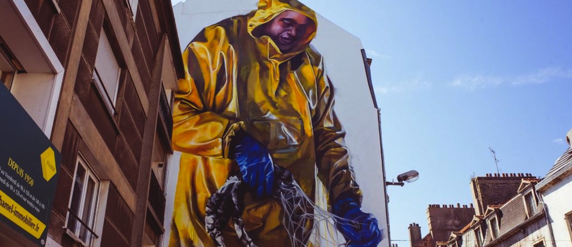„Fishermen“ – New Mural by Street Artist Young Jarus in Boulogne sur Mer // France