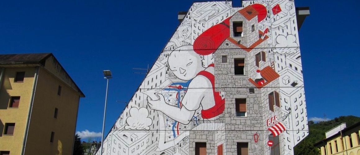 „Backpack Home“ – New Massive Mural by Street Artist Millo in Ascoli Piceno // Italy