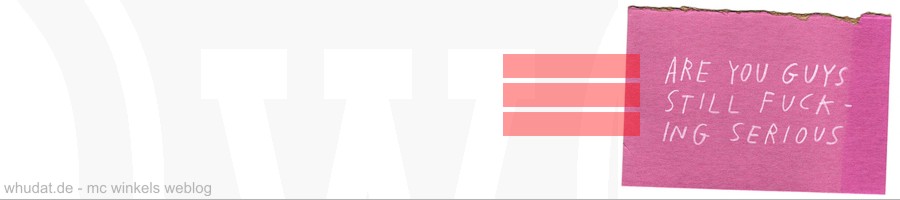 Und dann dieser Tweet-Button, im Beitrag oben rechts. Den finde ich ja superpraktisch und ich habe mich sehr gefreut, ihn gefunden zu haben, dass das Einbauen so leicht ging und dass jetzt alle wie verrückt darauf herumklicken werden – aber f*cken; so richtig läuft das noch nicht. :) Vielleicht liegt es aber auch an der unretweetable Shicé, die ich zuletzt hier gepostet habe. Ansonsten gilt: einfach raufdrücken, wenn Ihr parallel bei Twitter eingeloggt seid. Oder nervt das Mistviech und ich sollte ihn asap wieder buten nehmen?