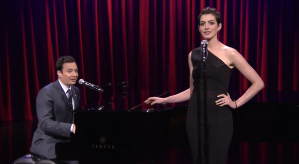 Jimmy Fallon & Anne Hathaway Sing Broadway Versions of Snoop Dogg, 50 Cent & Kendrick Lamar (Clip)