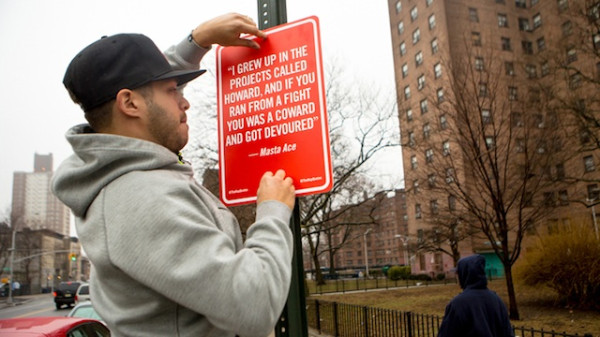 Some new „Rap Quotes“: Der gute Jay Shells war am vergangenen Wochenende erneut für sein most dopes „Rap Quotes„-Projekt unterwegs. Nach einem Ausflug an die Westküste zu Jahresbeginn und erfolgreicher Beschilderung der City of Angels, nahm sich der Künstler nun erneut seine Heimatstadt New York City vor. Die höchstoffiziell daherkommenden Straßenschilder mit bekannten Rap-Zitaten von Slick Rick, Masta Ace, Rakim,… Weiterlesen