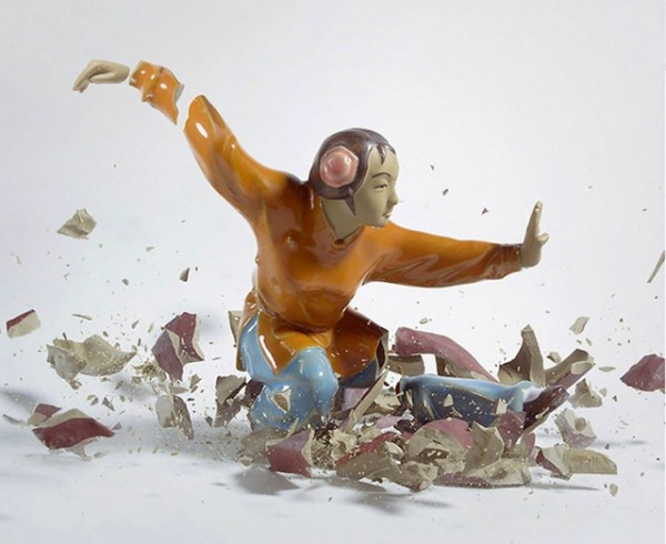 Aus drei Metern Höhe lässt der deutsche Fotograf Martin Klimas seine asiatischen Action-Figur-Porzellan-Skulpturen auf den Boden fallen und fotografiert diese im Moment des Aufkommens. Gerade bei diesen Figuren, die allesamt eine gewisse Kampf-Dynamik ausstrahlen, wirkt es fast so, als hätte er den Figuren – im Moment ihres Zerbrechens – Leben eingehaucht. „Porcelain martial arts characters dropped from three meters high… Weiterlesen