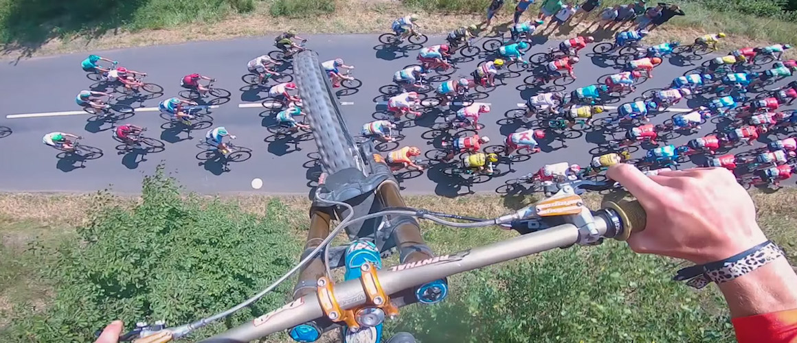 Warum nicht einfach mal das Fahrerfeld der Tour de France auf einem Mountainbike überspringen? Der 19-jährige Valentin Anouilh hat’s einfach mal gemacht! Auf der zehnten Etappe der Tour 2019 von Saint-Flour nach Albi war es soweit. Zum Glück gibt es Aufnahmen des waghalsiges Sprunges… Happy Mittwoch!