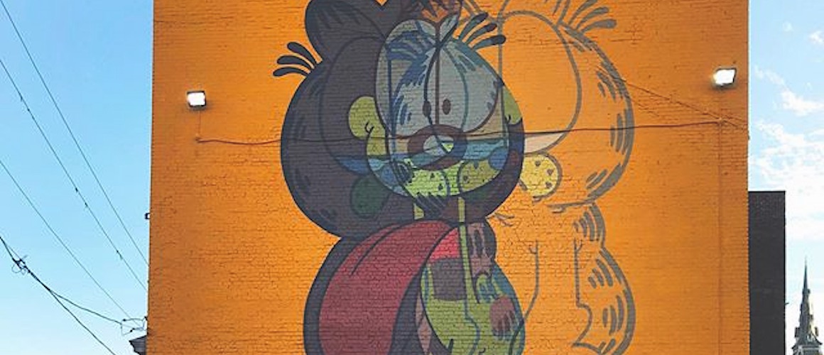Soeben entstand ein brandneues Jerkface-Mural im Stadtviertel Arbor Hill von Albany/New York. Großflächig portraitiert wurde hier die Comic-Ikone Garfield. Ihr wisst schon …dieser fett, faul, filosofische Kater mit dem charakeristisch getigerten Fell und dem noch charakteristischeren Appetit aus Lasagne! Im letzten Jahr feierte der gute Garfield aus der Feder von Jim Davis bereits seinen 40. Geburtstag…