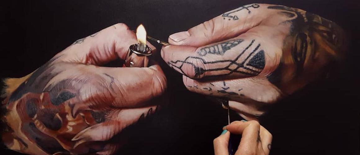 Jackee Sandelands-Strom portraitiert tätowierte Hände in hyperrealistischen Gemälden