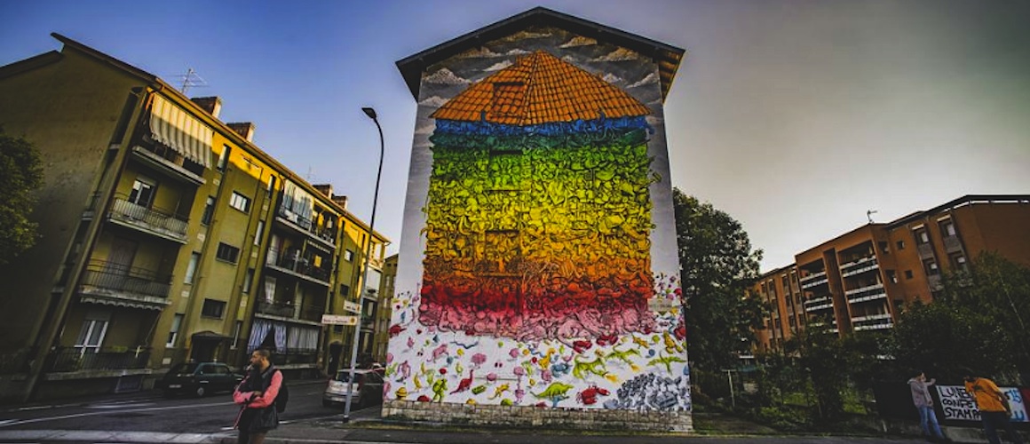„A House For Everyone“ – Vibrant New Mural by Street Artist Blu in Bergamo // Italy
