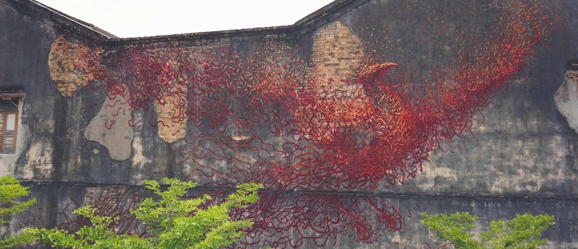 „Phoenix“ – A New Stunning Mural by Street Artist DALeast in Penang // Malaysia