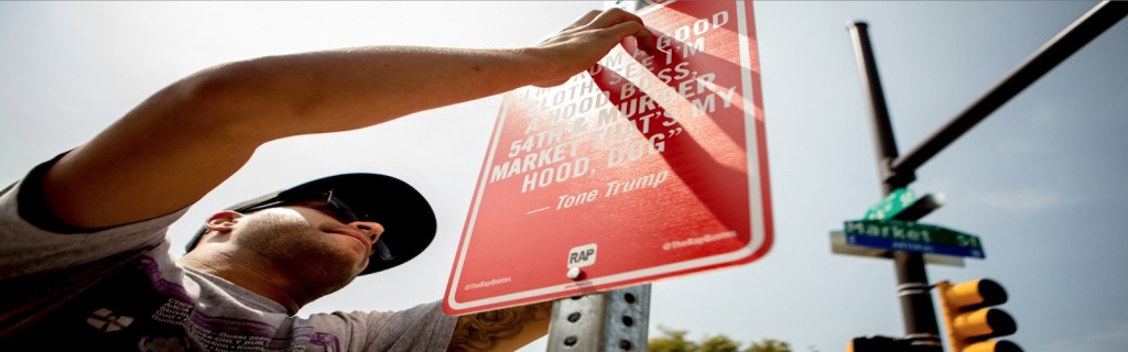 Der gute Jay Shells wird glücklicherweise einfach nicht müde amerikanische Metropolen mit seiner Rap Quotes-Beschilderung zu verzieren. Nach New York und Los Angeles war der Dude nun in Philadelphia unterwegs, um seine roten Schilder mit bekannten Rap-Zitaten an den originalen Spots des kreativen Ursprungs der jeweiligen Zitate zu montieren. Einige Aufnahmen der Aktion mit Zitat-Schildern von Action Bronson, Jay Electronica,… Weiterlesen
