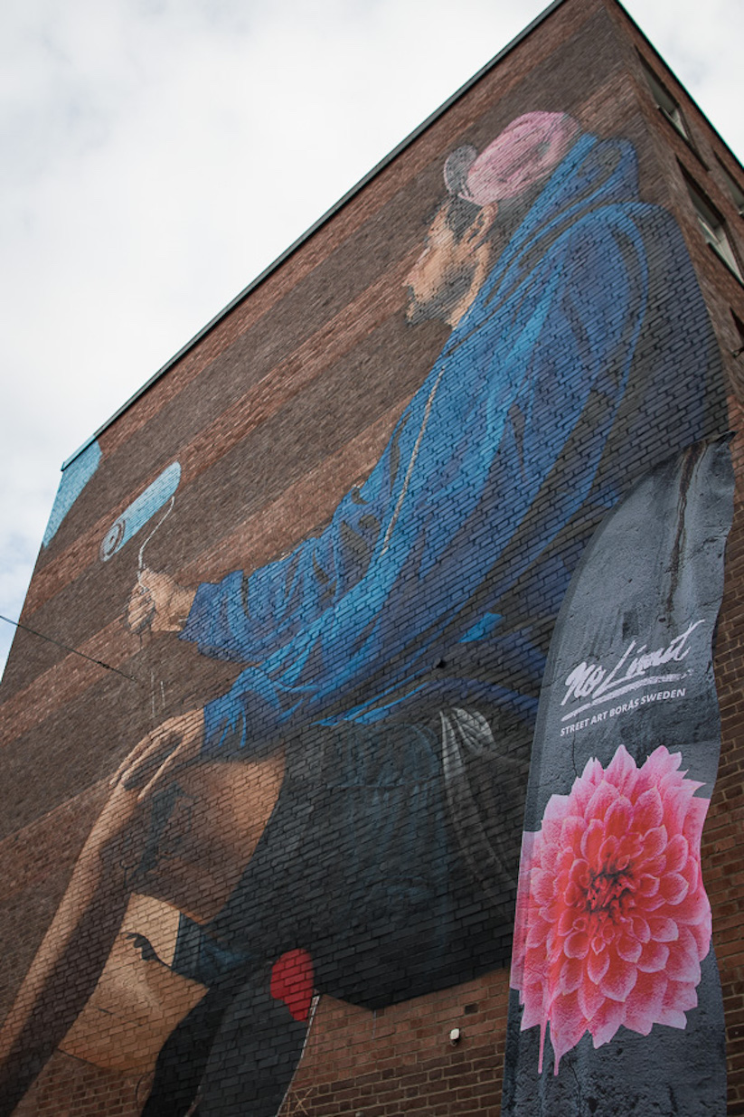 Das Mural des Tages beschert uns heute mal wieder der kroatische Künstler Lonac. Der Photorealistic Maestro begeistert uns bekanntlich seit geraumer Zeit mit uberdopen Murals wie „The Kiss„, „Nitpicking„, „Technicolor Dream„, „I lost my Shoe when I saw You“ oder „Dionysus„. Die letzten Tage verbrachte der talentierte Mann in der südschwedischen Provinz Västra Götalands län. Das örtliche No Limit Borås-Street Art Festival lud zu Monatsbeginn einige namenhafte Küntler der internationalen Urban Art-Szene in die kleine Stadt Borås. Der gute Lonac ließ sich nicht lumpen und spendierte dem Festival bzw. den Einwohnwohner des Städtchens, mit „Waiting for the Sky to dry“ ein gewohnt hyperrealistisches Mural. Direkt hier unten bekommt Ihr ein paar Eindrücke vom neusten Lonac-Streich aus dem Süden Schwedens. Pure Dopeness: