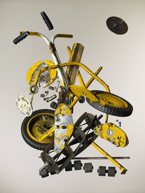 Ziemlich großartiges Bilderset von in filigranster Kleinstarbeit auseinandergefrimelter (erneut:) Vintage-Gegenständen wie z.B. hier oben einer alten Pentax-Kamera, einer Schreibmaschine, einer Oldschool-Uhr und eines Radiowecksers mit Ziffernblatt. Die einzelnen Teile wurden vom Künstler Todd McLellan anschließend so in Szene gesetzt, dass es wie eine große Explosion aussieht, bei der die einzelnen Teile jedoch in logischem Zusammenhang an- bzw. übereinander gelegt wurden. Verstanden? Wirklich brilliant, weiter unten dann noch ein altes Telefon, ein Rasenmäher und ein Diktiergerät und eine kleiner Timelapse-Clip über so einen Prozess: