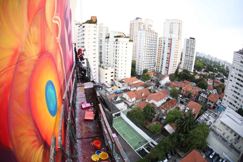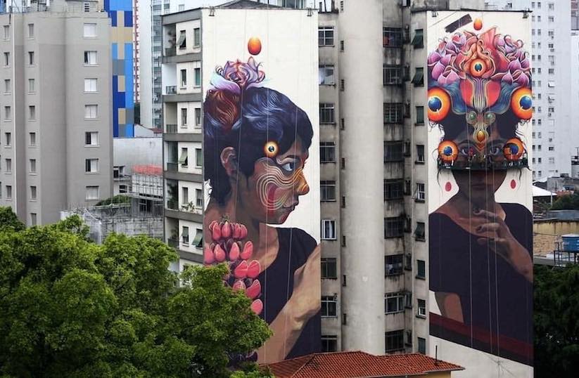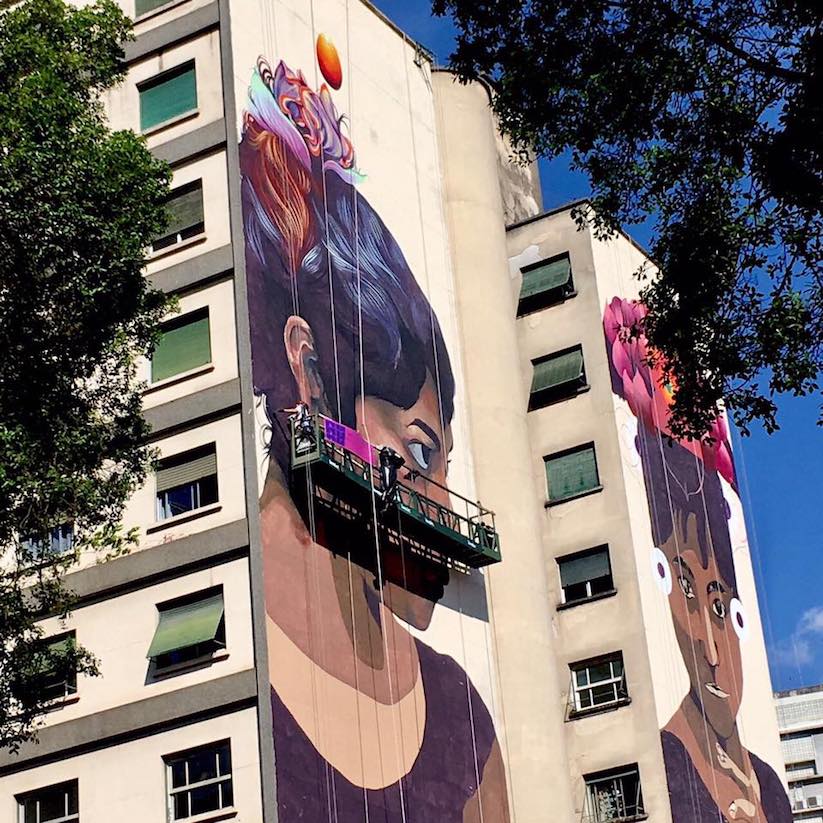 Gleo recently spent some time on the streets of Sao Paulo in Brazil where she worked her magic to create one of her largest street mural to date. Entitled “The Other”, The beautiful mural took her two weeks to finish. Both portraits are 40 meters high by 9 wide and were created as part of the first edition of the Street Art event Nufestival in Sao Paulo, Brasil which was organized by Instagrafite.